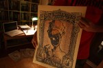 As the cradle of our worldwide company, you can imagine how the city of Twin Peaks is special to our hearts…. Especially to Lelan’s… So, when the Black Cat Bones Cafe of Puebla (Mexico) got the wonderful idea of celebrating the 20th anniversary of David Lynch’s master piece, you can imagine how ecstatic we were… The celebration consisted in a collective graphic exhibition. Gathering mostly highly-skilled artists from North America, some folks from the old continent were lucky enough to be invited (Thx to Fabien from Black Cat Bones !!). Among them, Olli Mighty, our beloved intern. His contribution was a portrait of Laura Palmer — Lelan’s daughter. Featuring of special agent Dale Cooper (aka Paul Muhad’ib) and the “log lady” are also displayed on the final piece. To stick as mush as possible to the unique spirit of the show, Olli even quoted one of its punch line : “Through the darkness of the future past, the magician longs to see a chance between two worlds… FIRE WALK WITH ME”….. The final poster is a color digital print on fine art paper (around 40 cm x 60 cm). Ultra limited edition of 6. If you also think that “the owls are not what they seem” and that Tibet’s freedom is worth fighting for, contact us, we might have some ultra-limited posters for you !